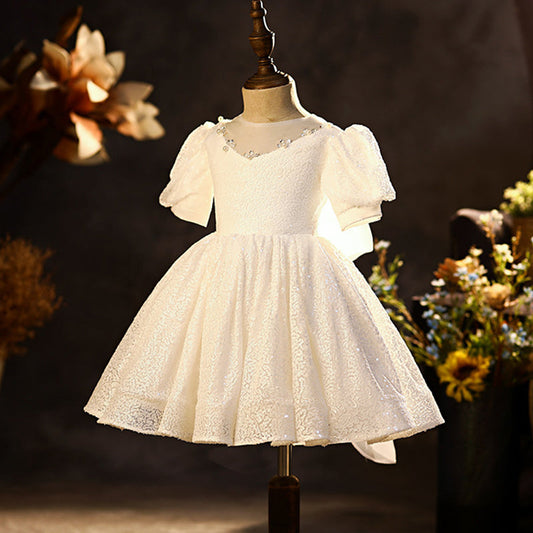 فستان أميرة من الدانتيل بطول الشاي للفتيات الصغيرات مع الترتر
