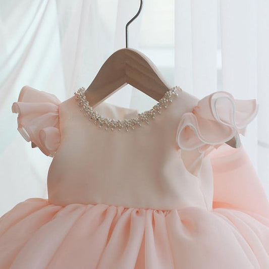 فستان أميرة من الأورجانزا بطول الشاي مع فيونكة من الخرز