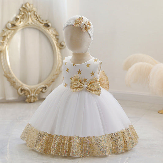 فستان أميرة من التول بطول الشاي للفتيات الصغيرات مع ترتر وقوس