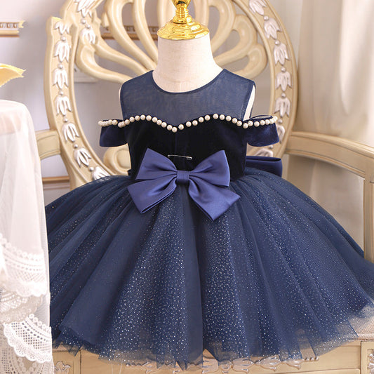 فستان الأميرة تول للفتيات الصغيرات مع خرز وربطة عنق بطول الشاي