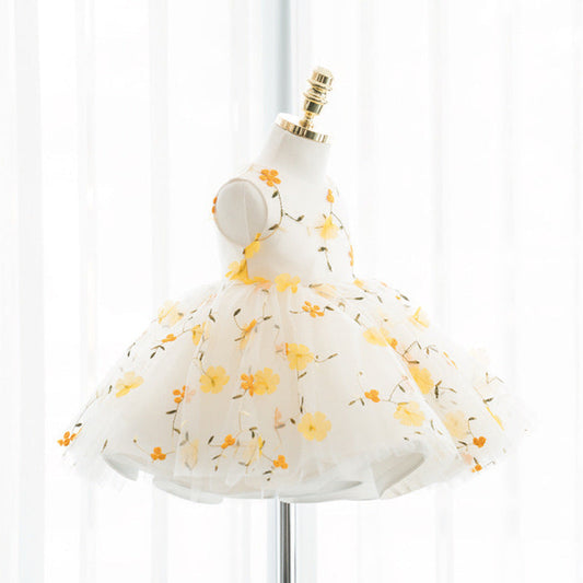 فستان الأميرة تول للفتيات الصغيرات مع زخارف الزهور بطول الشاي