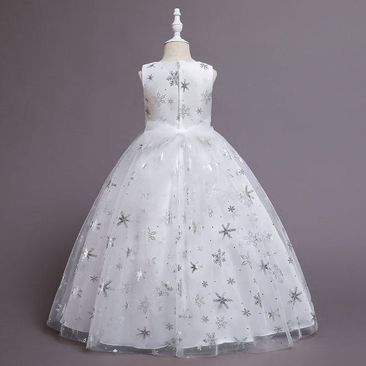 فستان الأميرة الأبيض المزين بالترتر والتول للبنات