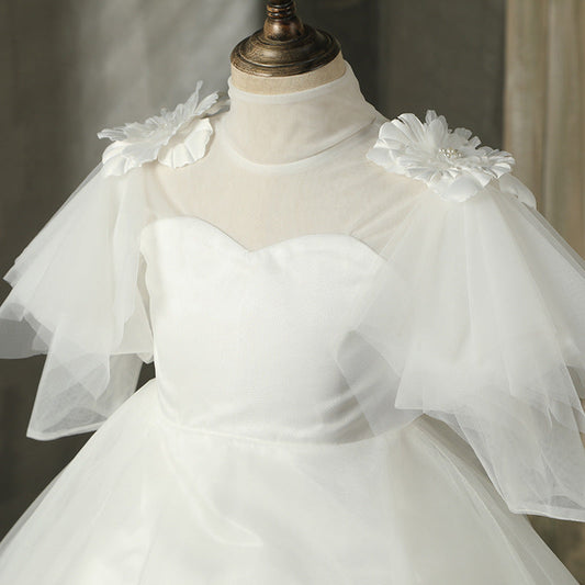 فستان الأميرة من التول الأبيض للفتيات الصغيرات ذو الرقبة القارب المنفوخة