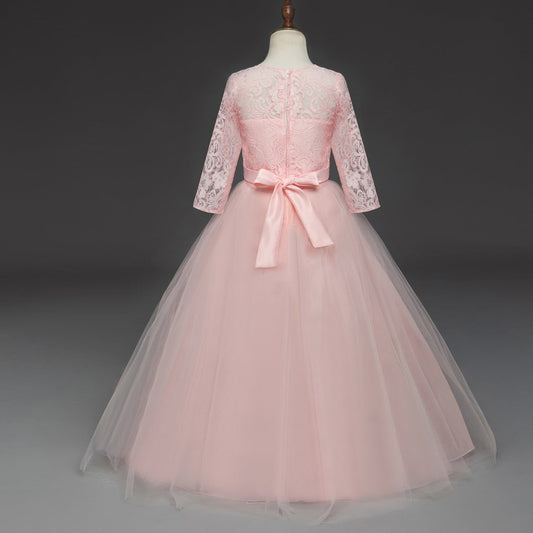 Elegant Lace A-line Flower Girl Dress with Long Sleeves