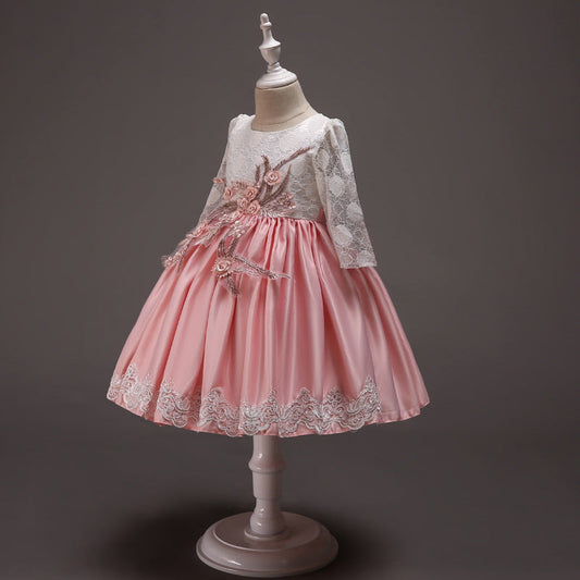 Elegant Satin Lace A-Line Flower Girl Dress with Floral Accents