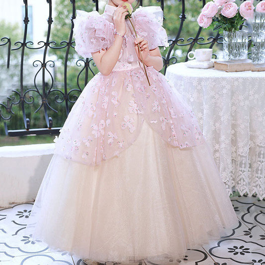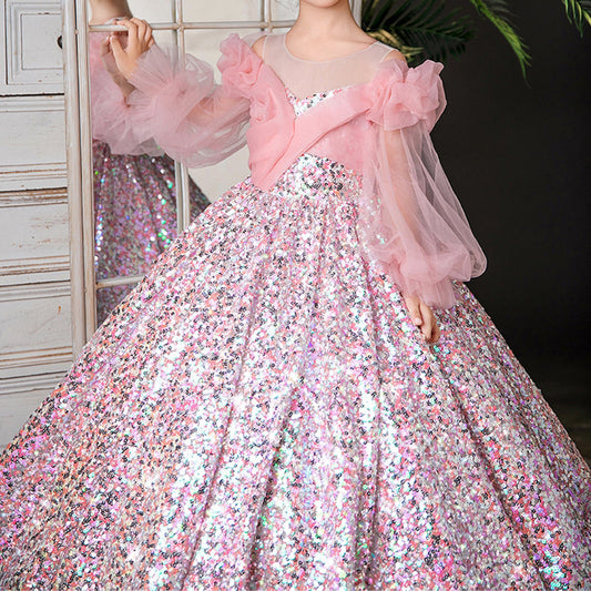 Elegant Pink Sequined Ball Gown Dress for Girls