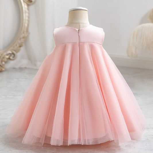 Elegant Satin Flower Girl Dress - Sleeveless Knee-Length Bow Dress