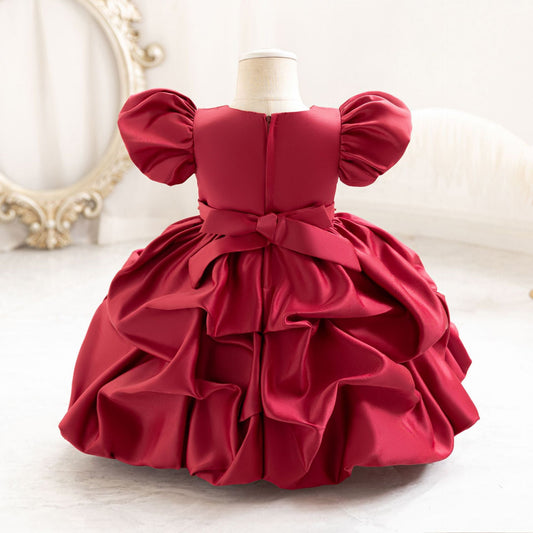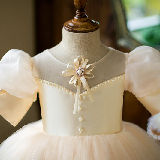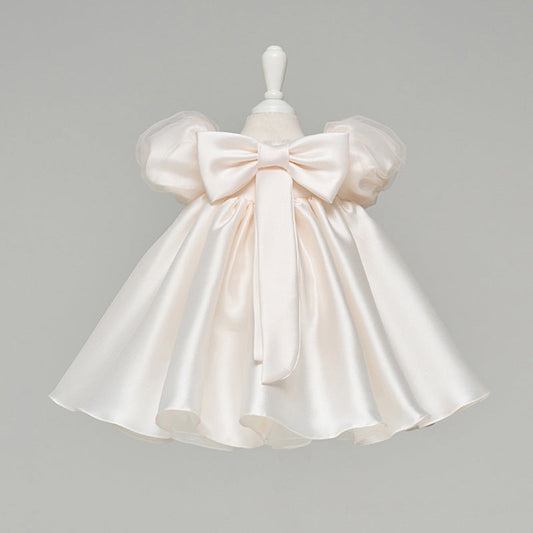 Ivory Princess Satin Puff Sleeve Flower Girl Dress