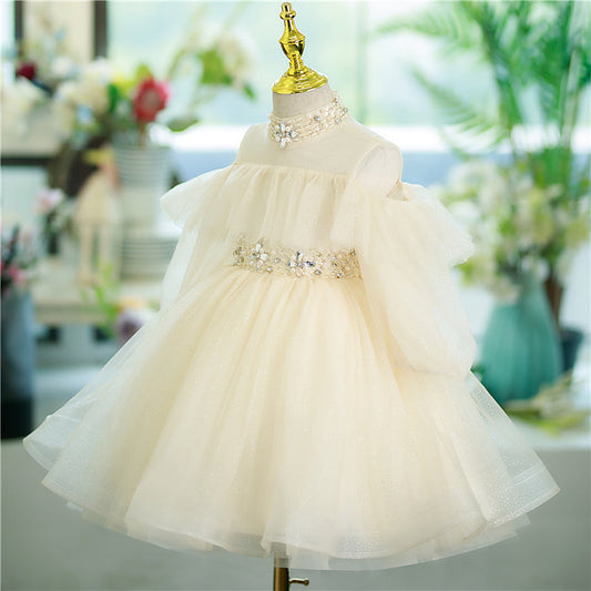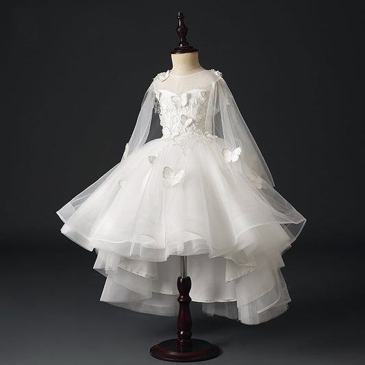 Lace Tulle Princess Flower Girl Dress Long Sleeves Flowers