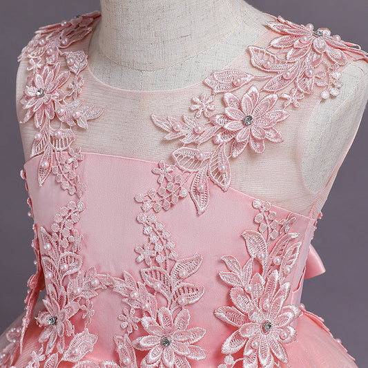 Lace Tulle Princess Flower Girl Dress | Sleeveless Tea