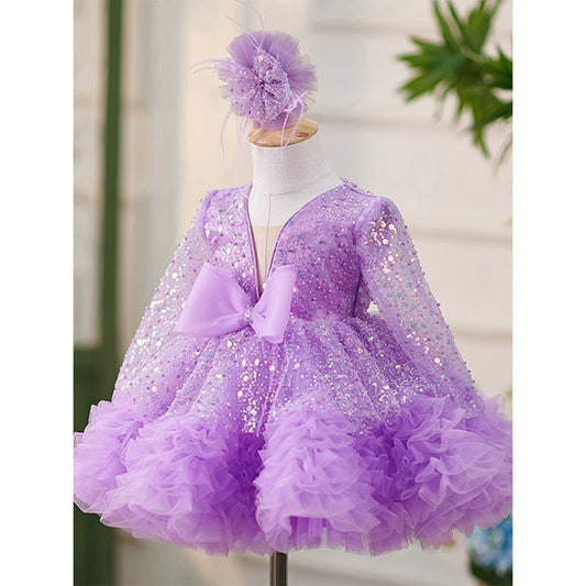 Lavender Sequin Ball Gown Dress with Bow for Girls