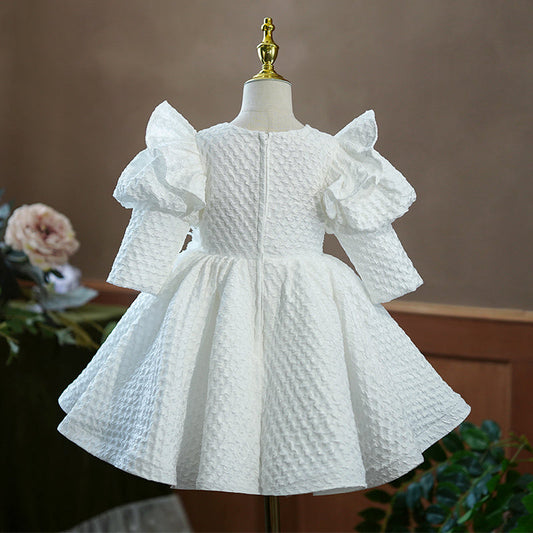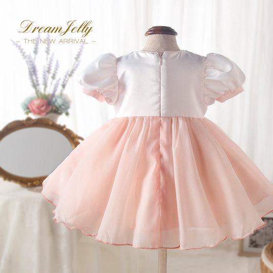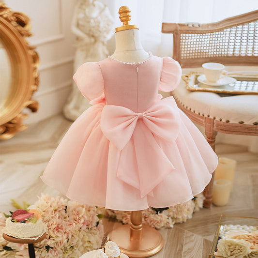 Pink Princess Flower Girl Dress Puff Sleeve Short Dress