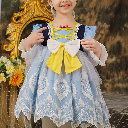 Princess Lace Flower Girl Dress with Bow Embellishments