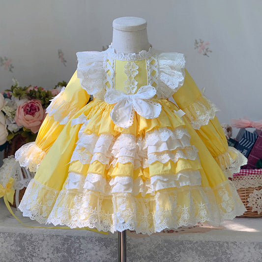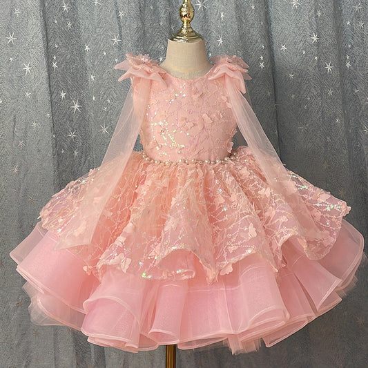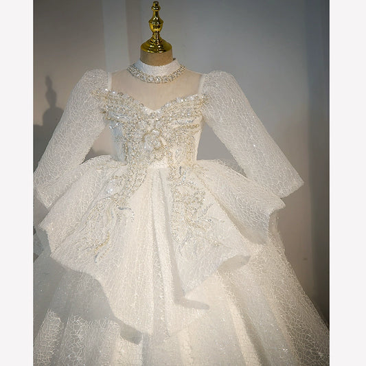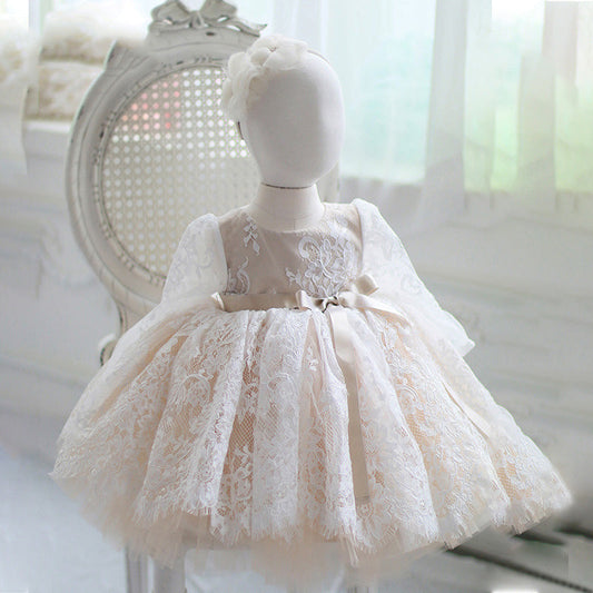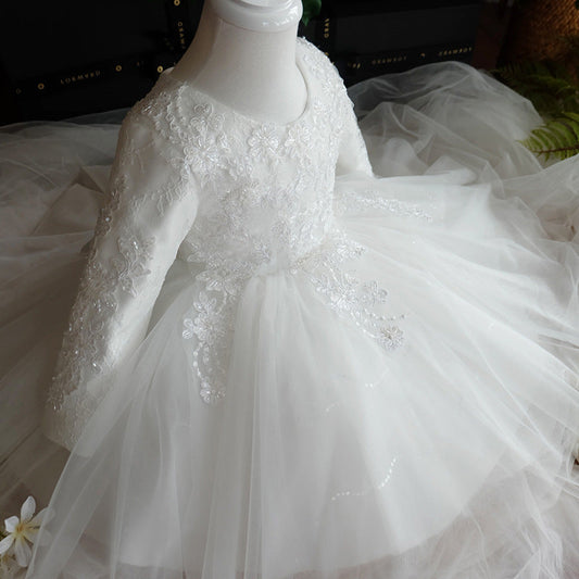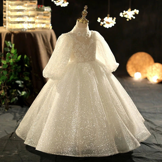 Princess Lace Flower Girl Dress with Long Lantern Sleeves