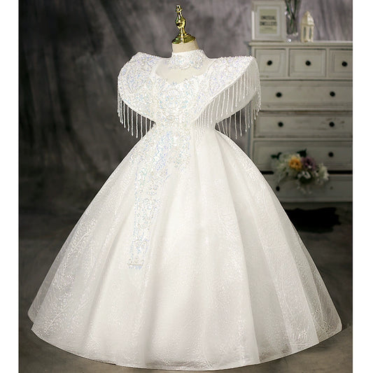 Princess Mock Neck Floor Length Tulle Flower Girl Dress in White