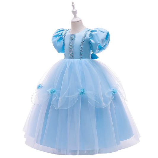 Princess Round Floor Length Satin Flower Girl Dress in Blue