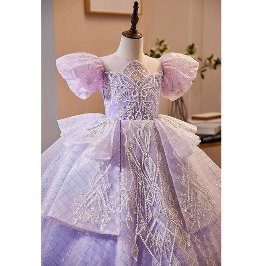 Princess Round Floor Length Organza Flower Girl Dress in Lilac