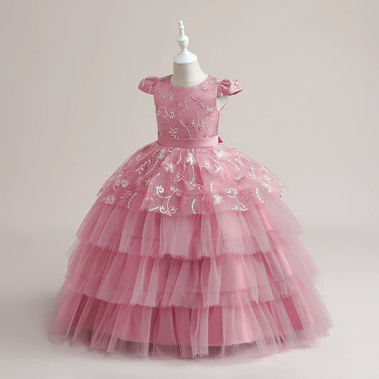 Princess Polyester Flower Girl Dress with Bows and Ruffles