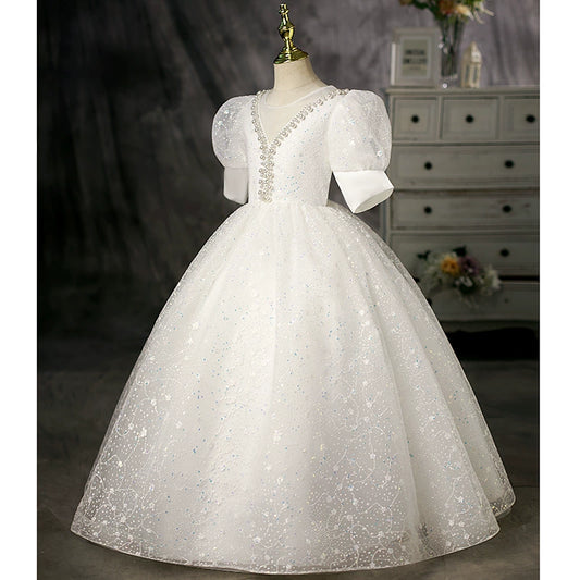 Princess Round Floor Length Organza Flower Girl Dress in White