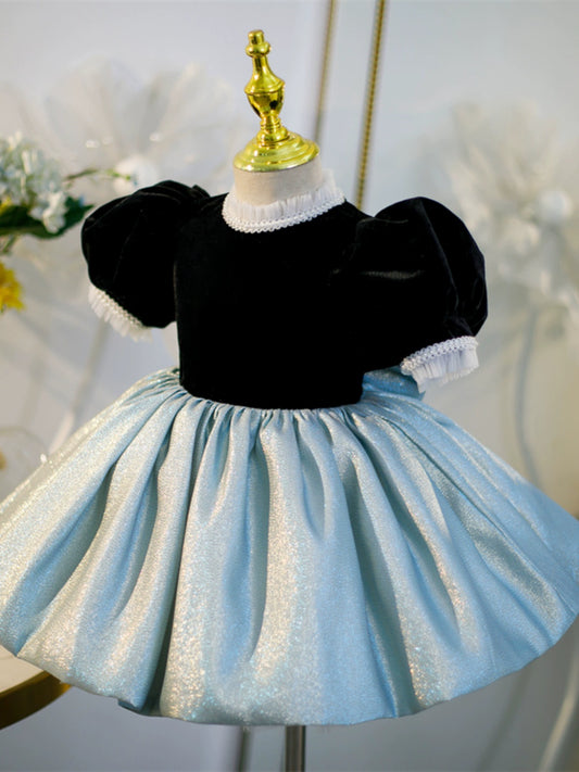 Princess Round Floor Length Lace Flower Girl Dress in Blue