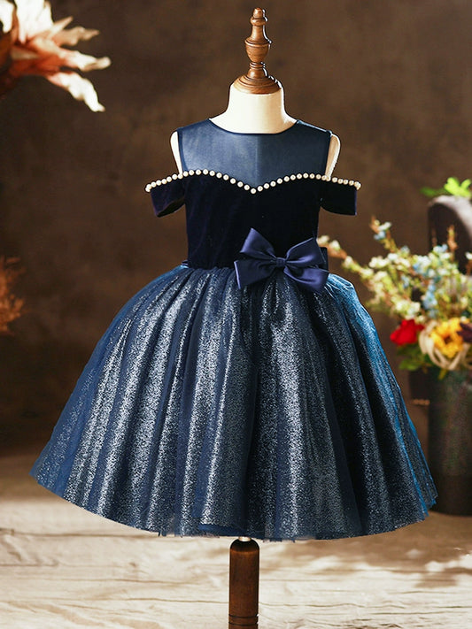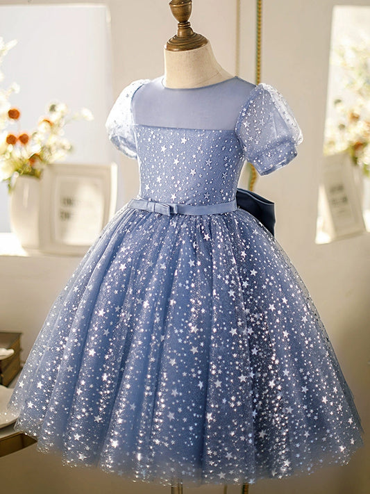 Princess Round Tulle Flower Girl Dress in Blue