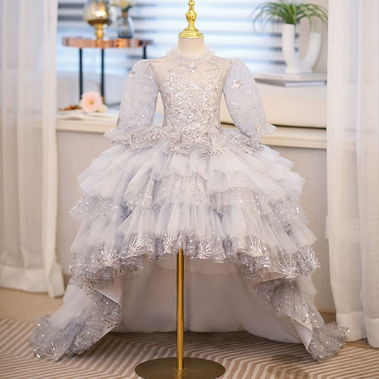 Princess Round Tulle Flower Girl Dress in Grey