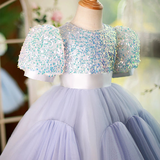Princess Round Tulle Flower Girl Dress in Lilac