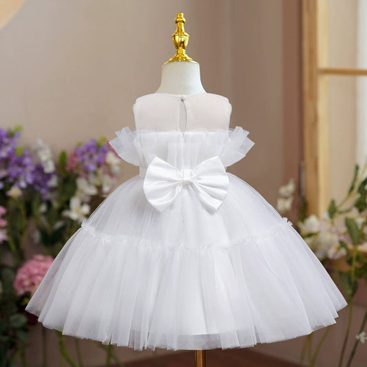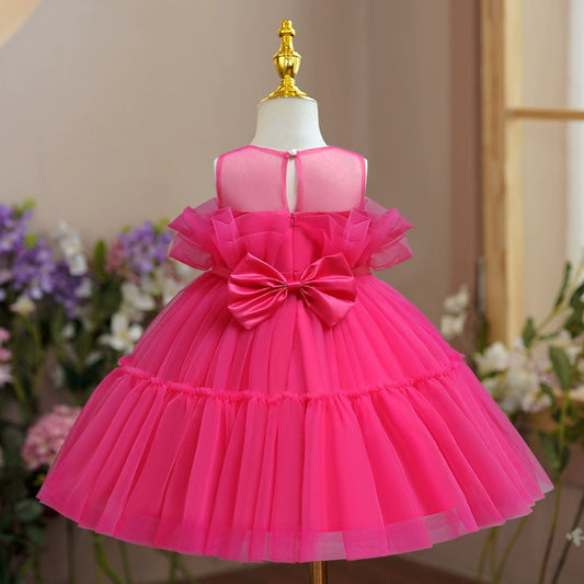 Princess Satin Flower Girl Dress with Bow and Ruffle Details
