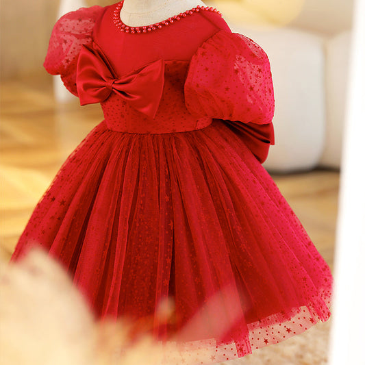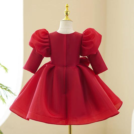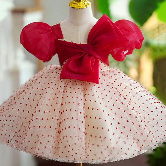 Red Tulle Ball Gown with Bow for Girls, Knee Length