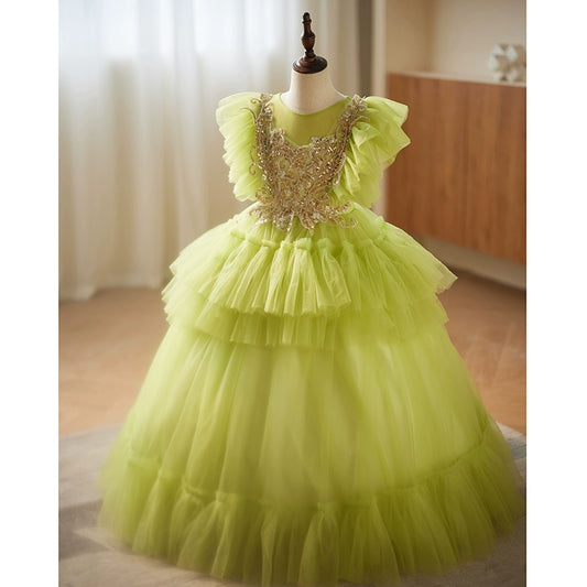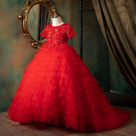 Red Sequined Ball Gown Flower Girl Dress for Kids