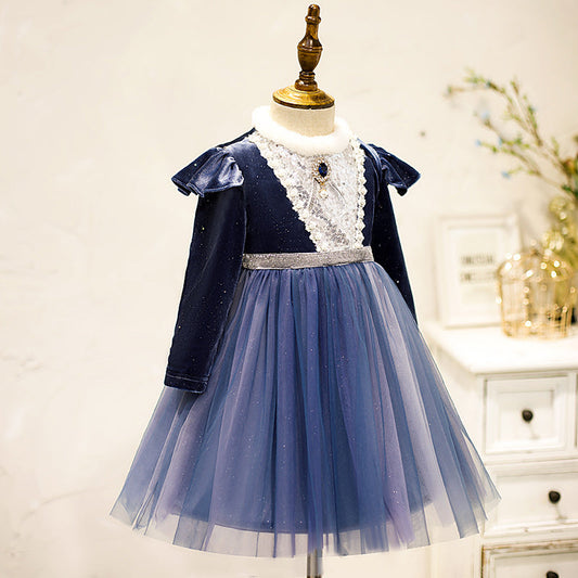 Royal Blue Tulle Lace Flower Girl Dress | Long Sleeves
