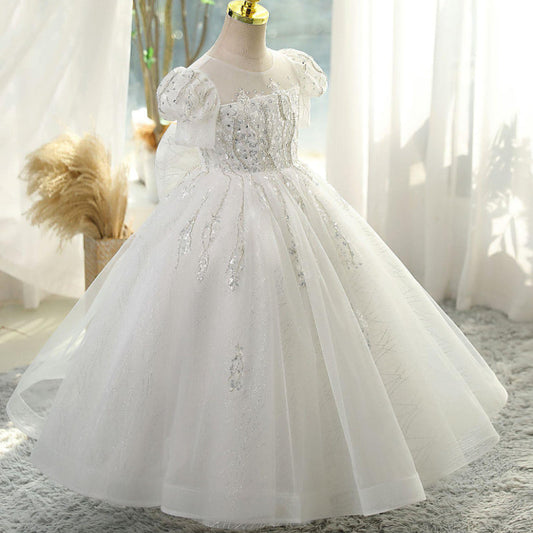 Sequin Lace Bow Tulle Ball Gown for Girls