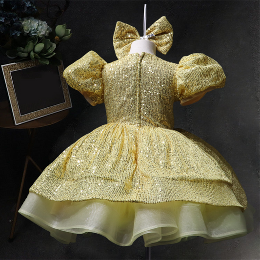 Sequin Bow Puffy Princess Tulle Dress for Girls