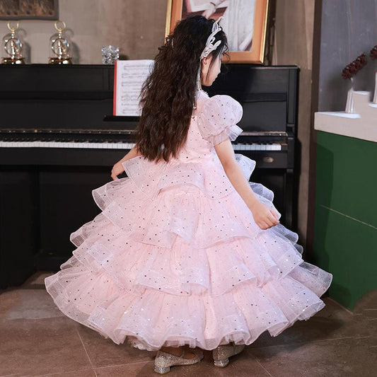 Sequin Tiered Pink Tulle Princess Dress for Girls