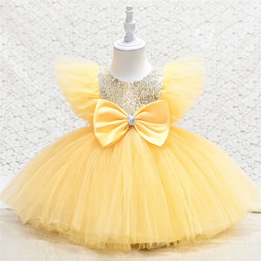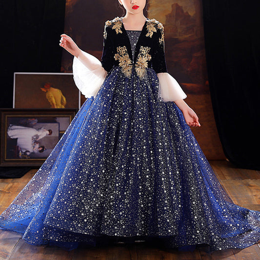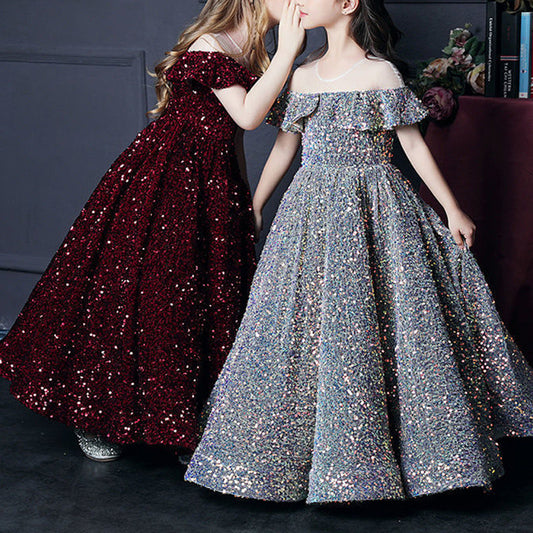 Sequined Princess Flower Girl Dress Lace Bell Long Sleeve