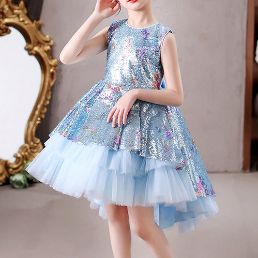 Sequin Tulle Princess Dress for Girls, Multicolor, Floor Length