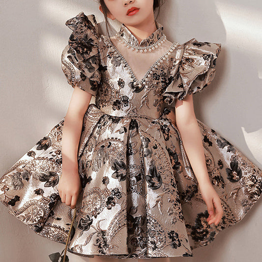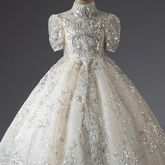 Sequined Princess Flower Girl Dress with Cascading Ruffles