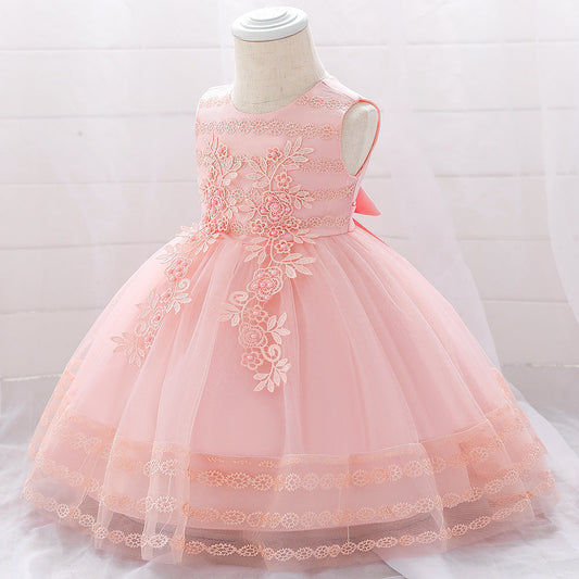 Sleeveless Pink Tulle Ball Gown for Girls with Floral Appliqué