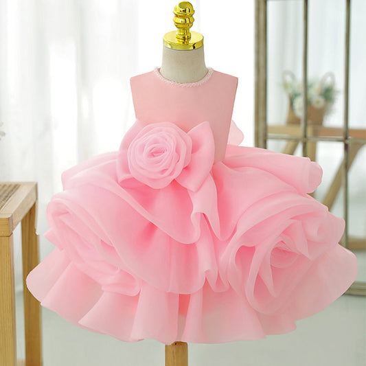 Sleeveless Princess Flower Girl Dress with Organza Flowers