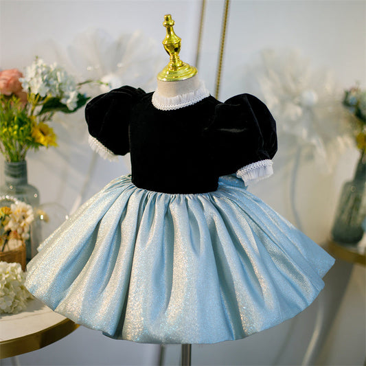 Velvet Princess Dress with Beaded Neckline and Bow for Girls