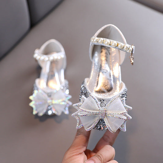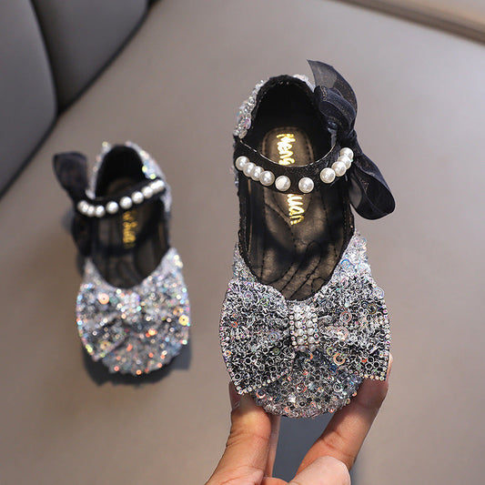 Sparkly Closed-Toe Sequin Party Shoes with Bows for Girls