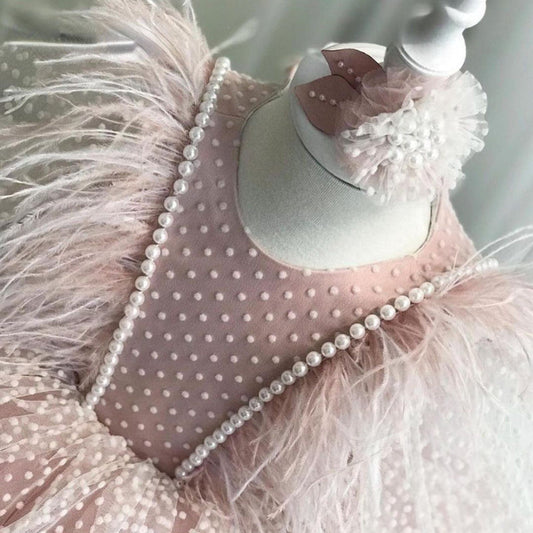 Toddler Pearl Butterfly Collar Ball Gown Dress