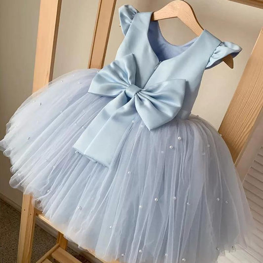 Sleeveless Ball Gown Knee-Length Princess Dress with Tiered Tulle and Bow