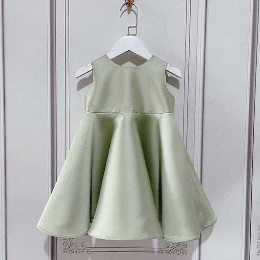 A-Line Satin Green Knee-Length Sleeveless Dress for Girls