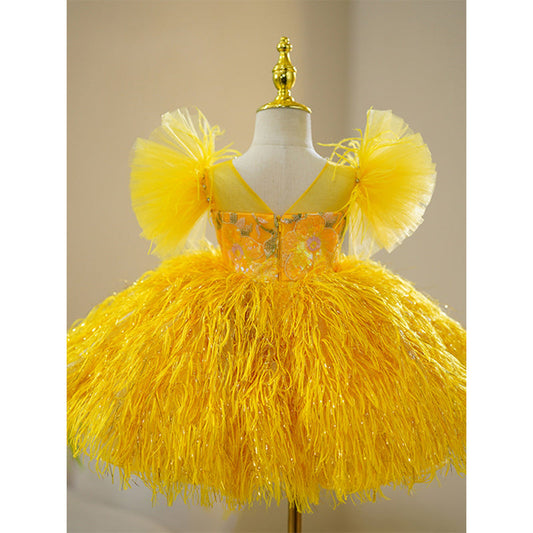 Orange Puffy Princess Organza Dress with Bows for Girls
