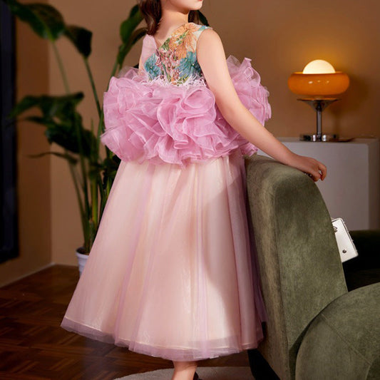 Sleeveless Organza Ball Gown Dress with Floral Embellishments for Girls
