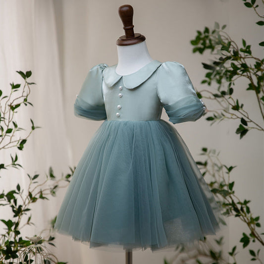 Robe de princesse verte élégante et bouffante pour filles