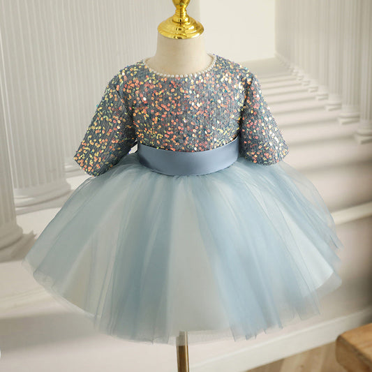 Robe de princesse en tulle à sequins bleu poudré - Occasions spéciales