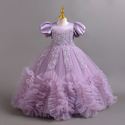 Robe de princesse élégante coupe trapèze pour fille – Mousseline et paillettes