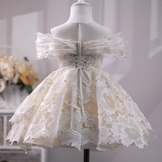 Robe de demoiselle d'honneur élégante en dentelle champagne pour tout-petits